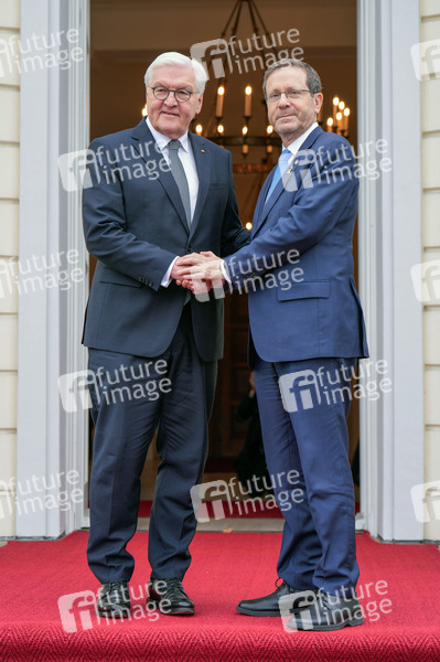 Isaac Herzog und Frank-Walter Steinmeier beim Empfang des Präsidenten des Staates Israel zu einem gemeinsamen Gespräch mit dem Bundespräsidenten und zum Eintrag ins Gästebuch im Schloss Bellevue. Berlin, 16.02.2024
