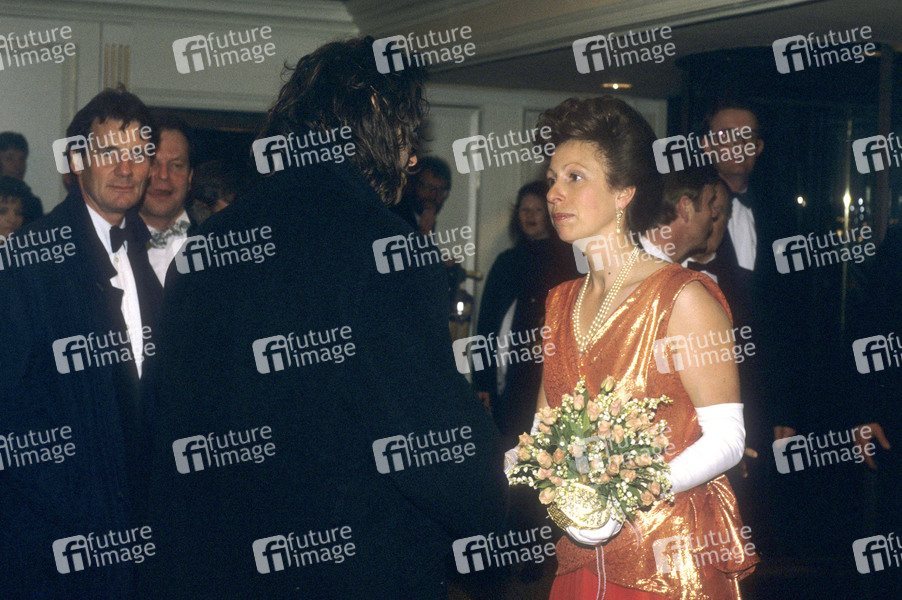 Michael Palin, Bob Geldof und Prinzessin Anne bei der Verleihung der BAFTA Film Awards 1988 / 41th British Academy Film Awards im Grosvenor House. London, 20.03.1988