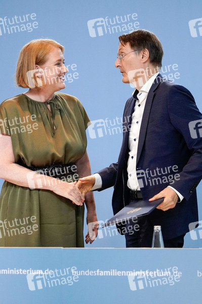 Lisa Paus und Karl Lauterbach bei der Pressekonferenz zur Einführung einer bundesweit einheitlichen 18-monatigen Ausbildung zur Pflegeassistenz (Pflegefachassistenzeinführungsgesetz) im Bundesfamilienministerium. Berlin, 04.09.2024