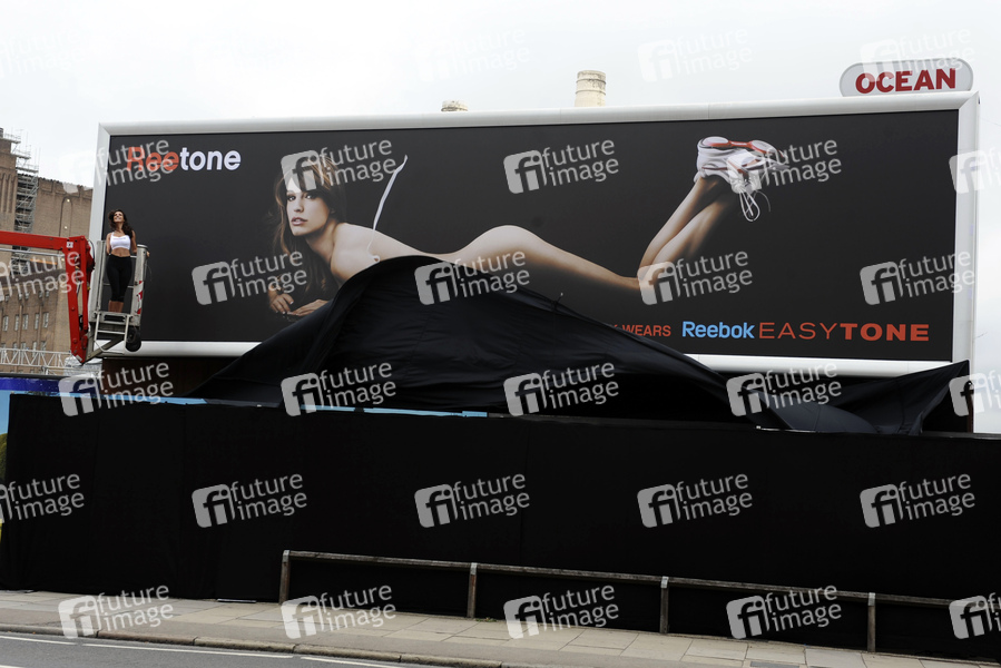 Kelly Brook enthüllt ihr neues Werbeplakat für Reebok Reetone Schuhe in Battersea, London