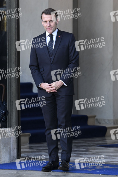 Emmanuel Macron beim Treffen der Koaltion der Willigen zu Beratung über die militärische Unterstützung für die Ukraine im Élysée-Palast. Paris, 06.01.2026