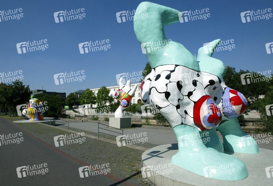 Kunstwerk von Niki de Saint Phalle von 1974, Frauenfiguren mit überdimensionierten Geschlechtsteilen