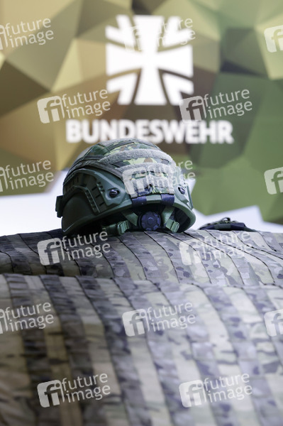 Bundeswehrhelm bei der weltgrößten Computerspielmesse Gamescom 2025 in der KoelnMesse. Köln, 23.08.2025