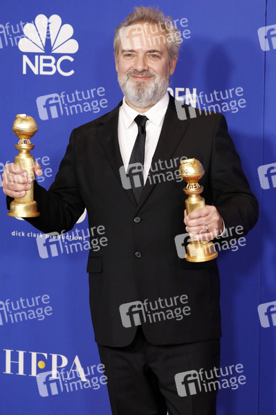 Sam Mendes mit dem Preis für den Besten Film - Drama für '1917' und als bester Regisseur bei der Verleihung der 77. Golden Globe Awards im Beverly Hilton Hotel. Beverly Hills, 05.01.2020