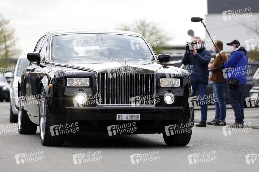 Die Stadt Leverkusen befürchtete eine größere Menschenansammlung bei der Beerdigung eines hochrangigen Clan-Mitglieds einer Großfamilie und damit Verstöße gegen die Corona-Schutzverordnung. Ein Clan-Mitglied fährt im Rolls-Royce vor. Leverkusen, 09.04.2021