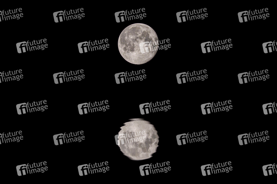 Schlaflosigkeit, Insomnia, Nacht, nachts, Spiegelung, Vollmond, Mondphasen, Astronomie, Himmelskörper, Krater, Mondkrater, Mondkalender, Supermond, Super-Mond, Mondfinsternis, Erdschatten, natürlicher Satellit der Erde, Mondfühligkeit, Mondgöttin Luna, abnehmender Mond, Symbolbild, Symbolfoto, Fotomontage