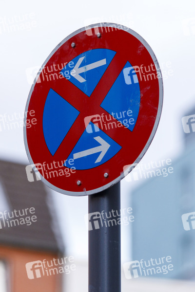 Das Verkehrszeichen Absolutes Haltverbot (Mitte), Aufstellung rechts dient zum Einrichten einer Parkverbots-Zone. (Themenbild, Symbolbild) Köln, 13.03.2021