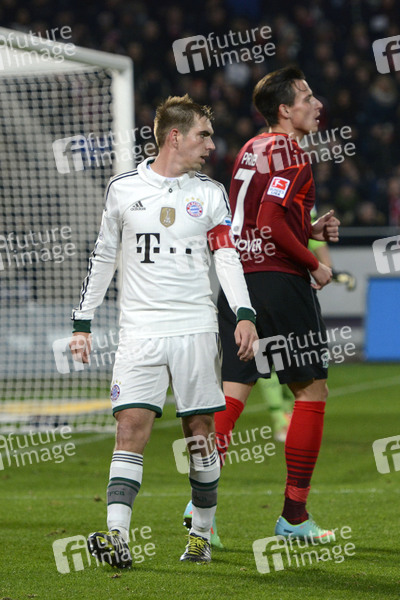 Philipp Lahm und Edgar Prib beim Fußball Bundesliga Spiel Hannover 96 gegen FC Bayern München (0:4) in der HDI Arena. Hannover, 23.04.2014
