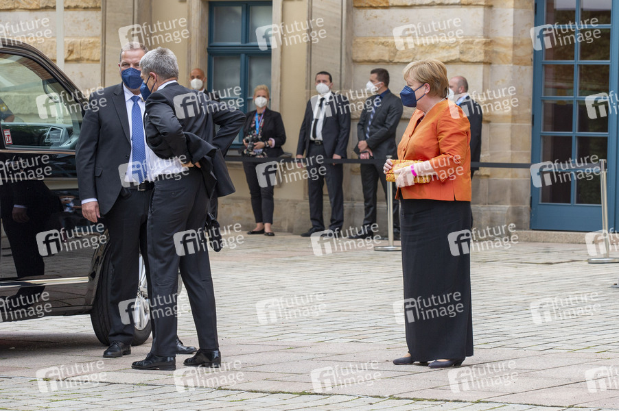 Angela Merkel mit Ehemann Joachim Sauer bei der Eröffnung der Richard-Wagner-Festspiele 2021 mit der Premiere von Richard Wagners 'Der fliegende Holländer' im Bayreuther Festspielhaus. Bayreuth, 25.07.2021