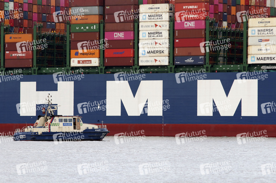 HMM Megamax-Klasse, Baureihe von Containerschiffen, Reederei Hyundai Merchant Marine, Containerschiffe, Jungfernfahrt, Containerriese, Megafrachter, Container, Schifffahrt, Transport, ISO-Container, Stückgut, Ladungskapazität, Wirtschaft, Tranport, Handel, Schffahrt, Fracht, Seefracht, Großraumbehälter, Güter, Transportkette, Symbolfoto, Symbolbild