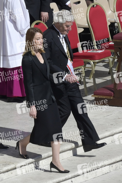 Roberta Metsola bei der Trauermesse für den verstorbenen Papst Franziskus auf dem Petersplatz. Vatikanstadt, 26.04.2025