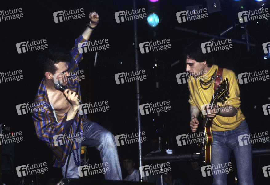Morrissey und Johnny Marr von The Smiths live im Hammersmith Palais. London, 15.06.1984