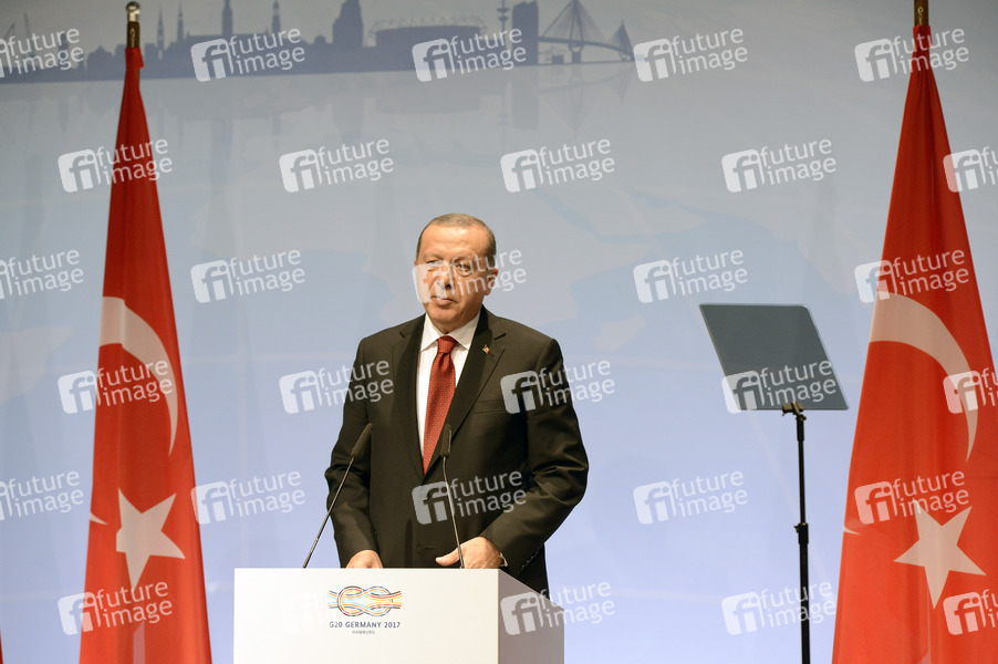 Recep Tayyip Erdogan bei einer Pressekonferenz auf dem G20-Gipfel. Hamburg, 08.07.2017