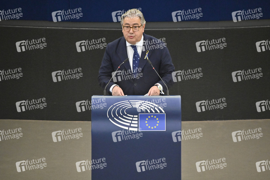 Juan Ignacio Zoido Alvarez bei einer Plenartagung zur Zusammenarbeit und Gemeinsamkeiten des Putin-Regimes und rechtsextremer sowie separatistischer Bewegungen in Europa im Plenarsaal des Europäischen Parlaments. Straßburg, 06.04.2022