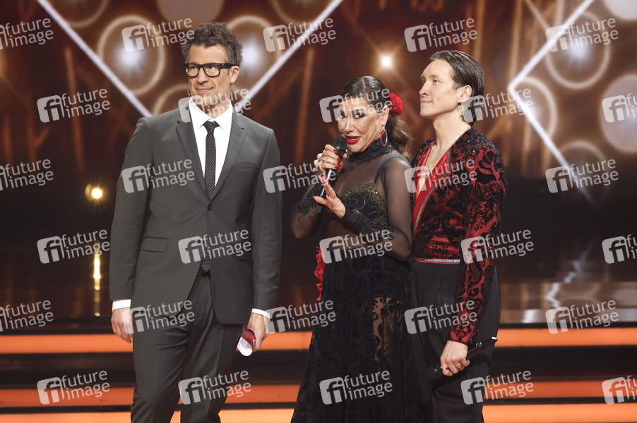 Daniel Hartwich, Simone Thomalla und Evgeny Vinokurov in der zweiten Live-Show der 18. Staffel der RTL-Tanzshow 'Let's Dance' im MMC Coloneum. Köln, 07.03.2025