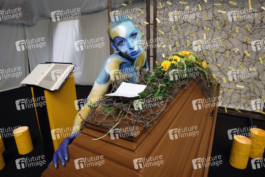 Bodypainting, Erotik, Frau, nackt, drinnen, weiblich, Sarg, erotic, woman, nude, indoor, female, coffin, casket