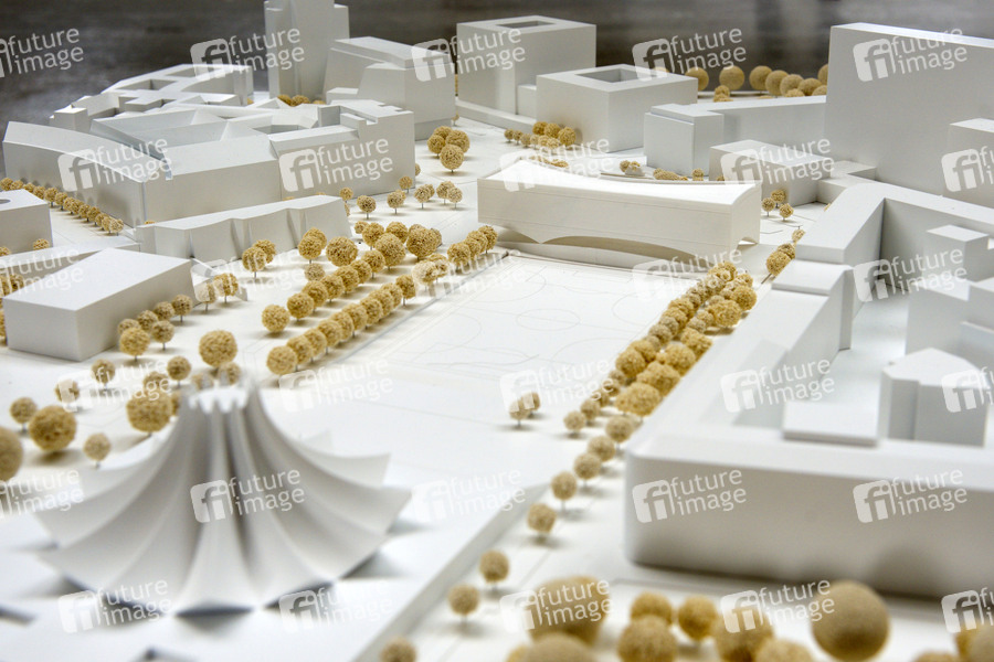 Gewinner-Modell vom Büro Dorte Mandrup aus Kopenhagen bei der Pressekonferenz mit Photocall zum Realisierungswettbewerb für das künftige Exilmuseum in der Station Berlin. Berlin, 14.08.2020