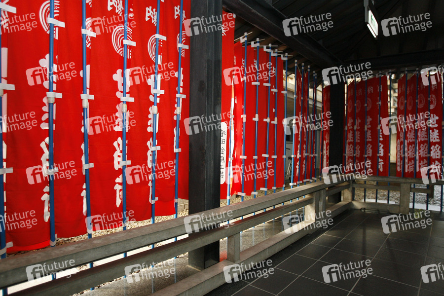 Tempel, Schrein, Flaggen, Fahnen, Banner, japanische Schriftzeichen