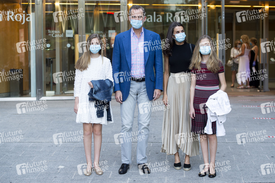 Prinzessin Sofia von Spanien, König Felipe von Spanien, Königin Letizia von Spanien und Prinzessin Leonor von Spanien besuchen die Flamenco-Show 'Fandango Avenue' im Rahmen des 35. Festival Internacional Madrid en Danza im Teatros del Canal. Madrid, 19.06.2020