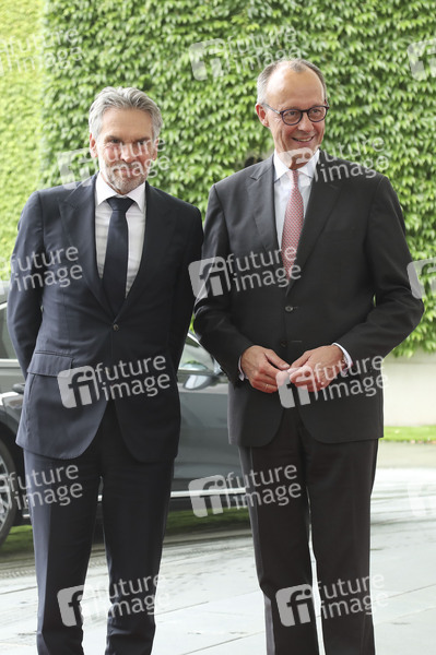 Dick Schoof und Friedrich Merz beim Empfang des niederländischen Ministerpräsidenten zu einem gemeinsamen Gespräch mit anschließendem Pressestatement im Bundeskanzleramt. Berlin, 10.06.2025