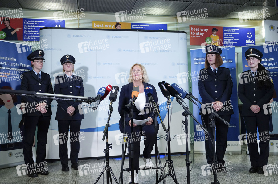 Nancy Faeser bei der Eröffnung der ersten Anlaufstelle der Bundespolizei zum Schutz von Frauen vor Gewalt am Ostbahnhof. Berlin, 15.08.2024