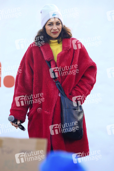 Nadja Benaissa bei der Kundgebung unter dem Motto 'Mutig. Menschlich. Miteinander. - Hand in Hand für unsere Demokratie' auf dem Bebelplatz. Berlin, 16.02.2025