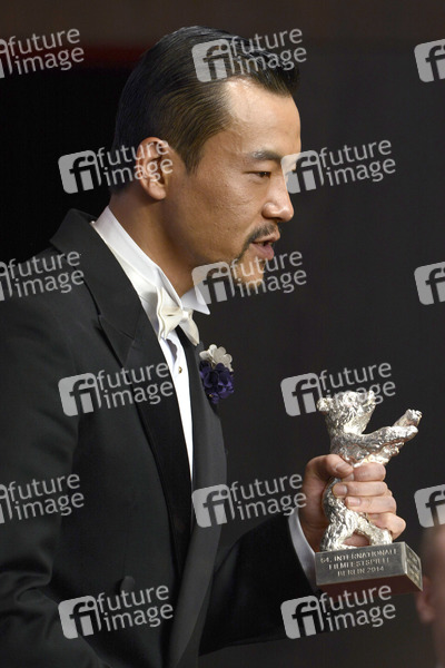 Liao Fan mit dem Silbernen Bären für den besten Darsteller in 'Bai ri yan huo / Black Coal, Thin Ice' bei der Pressekonferenz mit den Preisträgern auf der Berlinale 2014 / 64. Internationale Filmfestspiele Berlin, 15.02.2014
