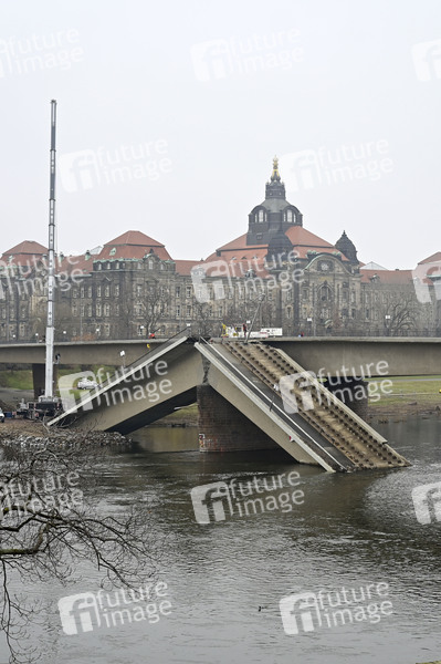In Dresden ist am 11. September 2024 ein Teil der Carolabrücke eingestürzt. Die Ursachen für die Schäden liegen in der Bauzeit. Alle Brückenzüge sind betroffen und müssen abgerissen werden. Dresden, 06.02.2025