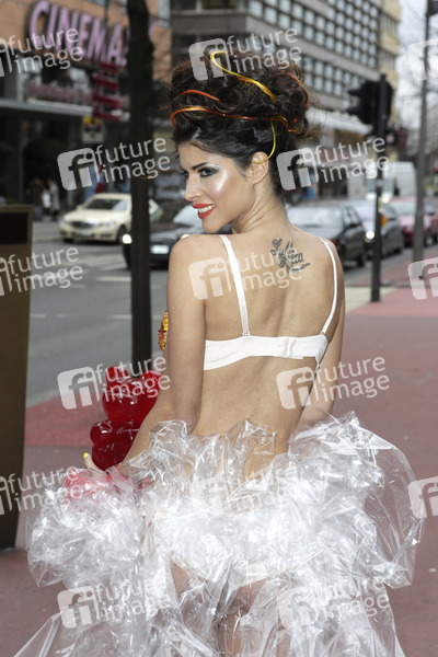 Micaela Schäfer präsentiert ihren persönlichen Berlinale Bären auf dem Boulevard der Stars, Berlin