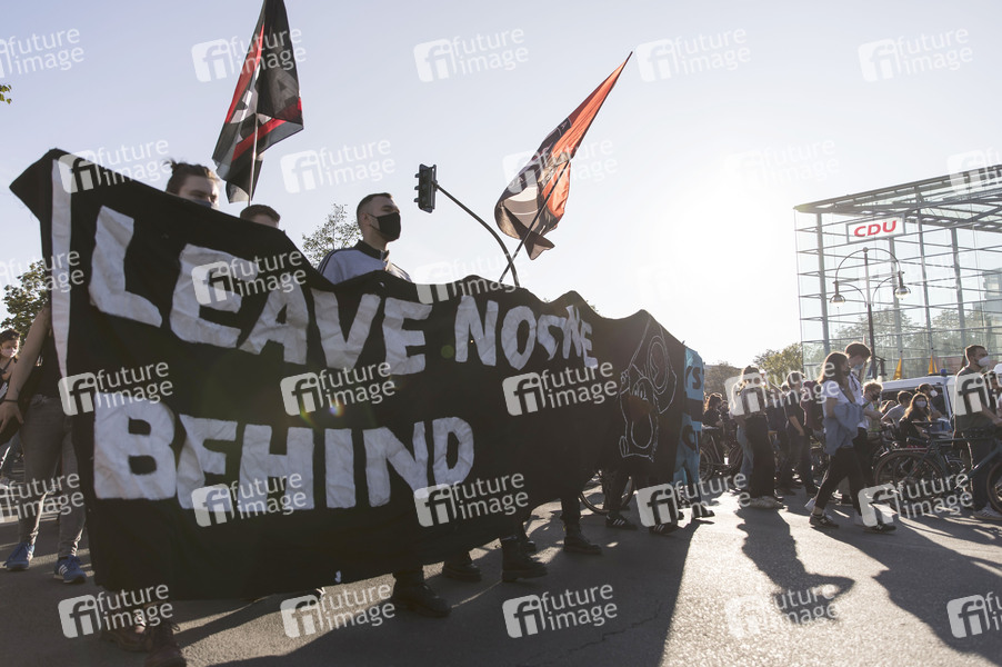 Demonstranten fordern unter dem Motto 'Es reicht! - Wir haben Platz' gemeinsam mit der Aktion Seebrücke und Campact die Evakuierung des Flüchtlingslagers in Moria und die Aufnahme von Flüchtlingen in Deutschland. Berlin, 20.09.2020