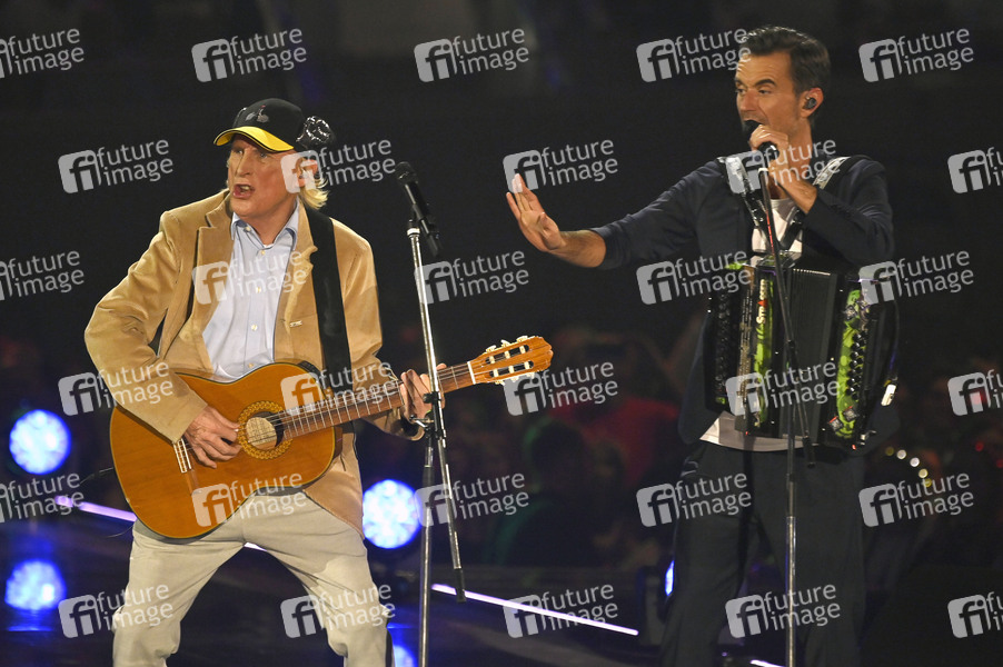 Otto Waalkes und Florian Silbereisen in der TV Show 'Schlagerbooom 2021 - Alles funkelt! Alles glitzert!' in der Dortmunder Westfalenhalle. Dortmund, 23.10.2021