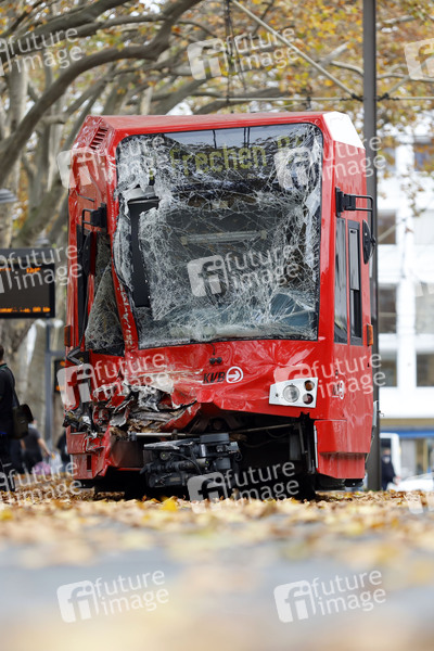 Bei einem schweren Straßenbahn-Unfall am Neumarkt zwischen zwei KVB-Zügen der Linien 1 und 7 sind 20 Menschen verletzt worden, eine Bahnfahrerin schwebt in Lebensgefahr. Als Ursache gilt derzeit eine fehlerhafte Weichenstellung. Köln, 02.11.2020