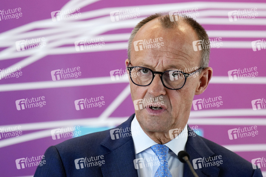 Friedrich Merz beim Pressestatement der CDU/CSU-Bundestagsfraktion zum Bundeshaushalt 2025 im Reichstagsgebäude. Berlin, 05.07.2024