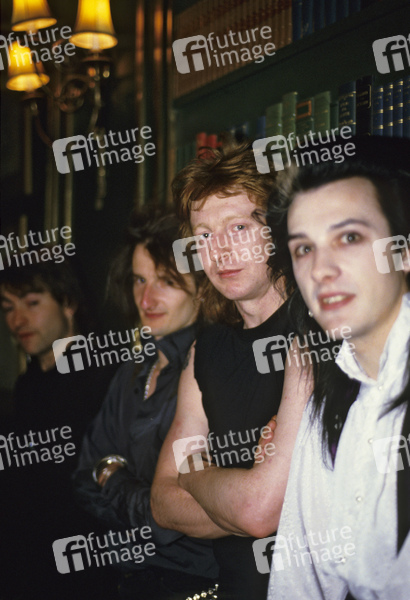 Roman Jugg, Bryn Merrick, Rat Scabies und Dave Vanian von The Damned bei einem Photoshooting in einem Hotel. London, 12.07.1985