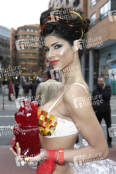 Micaela Schäfer präsentiert ihren persönlichen Berlinale Bären auf dem Boulevard der Stars, Berlin