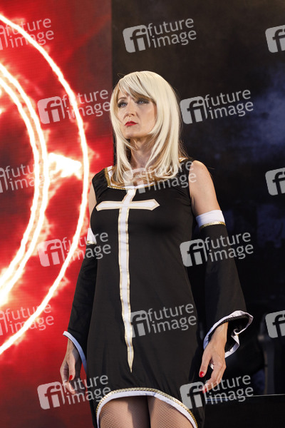 Dame in Kultisten-Outfit von Blutengel live auf dem XV. Amphi-Festival 2019 im Tanzbrunnen. Köln, 20.07.2019