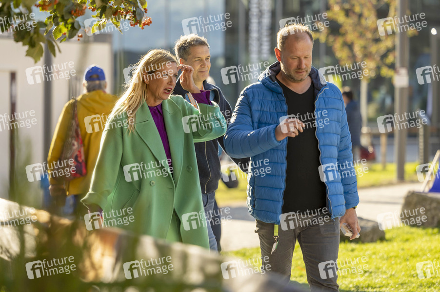Andrea Kiewel bei der Produktion des 'ZDF-Fernsehgarten on Tour' auf dem Petersberg während er Vorbereitungen zum Tag der Deutschen Einheit unter dem Motto 'Zusammen wachsen'. Erfurt, 30.09.2022