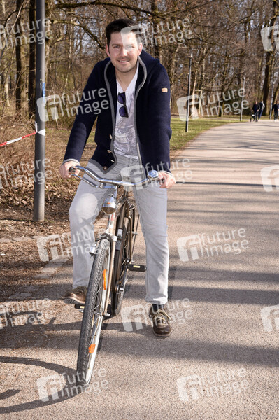 Max Kronseder (DeSchoWieda) beim Videodreh zum Lied 'Radlg'fahrn und G'schmissn' der Guten A-Band im Bavariapark und auf der Theresienwiese. München, 26.03.2021