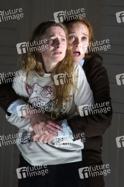 Kathleen Morgeneyer und Nina Bruns bei der Premiere des Theaterstücks 'Die heilige Johanna der Schlachthöfe' im Berliner Ensemble. Berlin, 25.02.2025