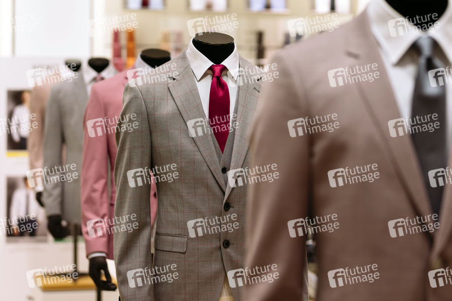 Mode, Herrenmode, Herrenabteilung, Kleidung, Herrenkleidung, Bekleidung, Herrenbekleidung, Dresscode, Garderobe, Anzug, Anzüge, Zweiteiler, Sakko, Sakkos, Smoking, Stoff, Zwirn, Stoffe, Anzugsakko, Krawatte, Jackett, Outfit, Männermode, Textilien, Textilbranche, Modebranche, Businesskleidung, Stil, Kleidungsstil, Geschäftskleidung, P&C, Peek und Cloppenburg, Business Casual, Fashion, Outlet, Kleiderordnung, Kleiderständer, Modeindustrie, Herrenanzug, Symbolbild, Symbolfoto