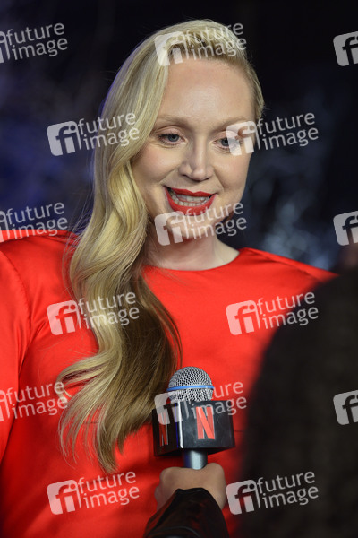 Larissa Weems in 'Wednesday', Brienne of Tarth / Brienne von Tarth in 'Game of Thrones', Commander Lyme in 'The Hunger Games 4', Captain Phasma in 'Star Wars: Episode VII & VIII', Miranda Hilmarson in 'Top of the Lake', Prominenz, Celebrity, Celebrities, Premiere, Serienpremiere, TV-Serie, Fernsehserie, Streaming, Video-on-Demand, TV, Fernsehen, Unterhaltung, Entertainment, Kultur, Ankunft, Schauapielerin