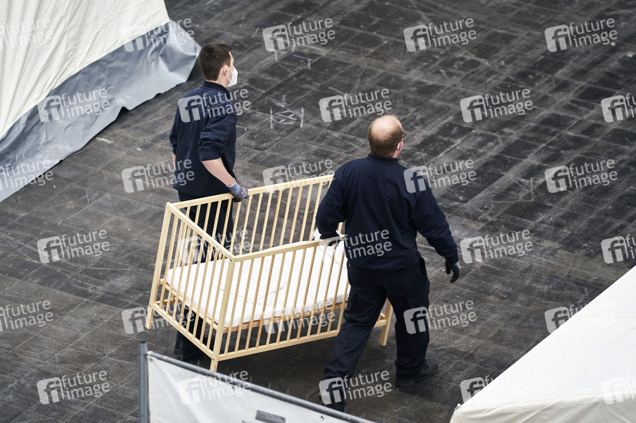 Zelt, Unterkunft, Notunterkunft, Soforthilfe, Flucht, Flüchtlinge, Flüchtling, Flüchtlingswelle, Freiwillige, Helfer, Helferinnen, Hilfe, Hilfsbereitschaft, Kriegsflüchtling, Ukrainer, Solidarität, Kinderbett