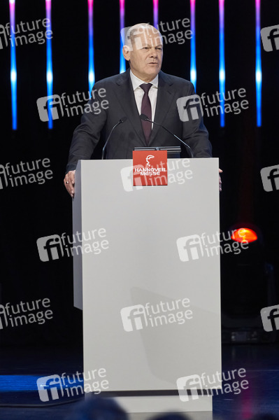 Olaf Scholz bei der Eröffnungszeremonie der Hannover Messe 2024 mit dem Partnerland Norwegen im HCC Kuppelsaal. Hannover, 21.04.2024