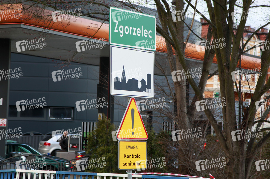 Polnische Spezialkräfte führen am Grenzübergang Stadtbrücke zwischen Görlitz und Zgorzelec Kontrollen auf eine mögliche Coronavirus-Infektion durch. Görlitz, 13.03.2020