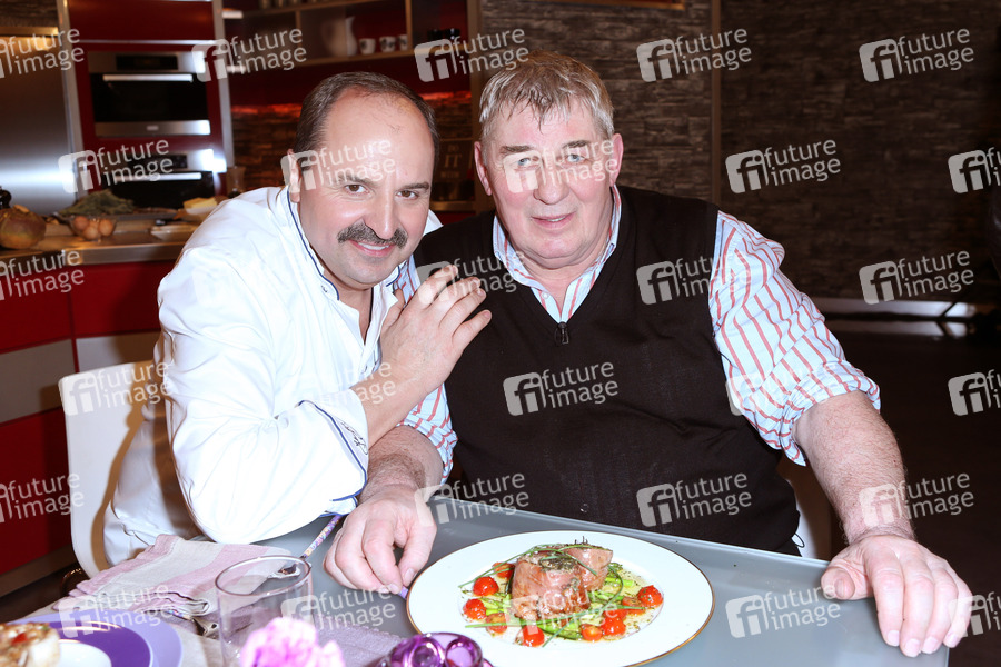 Johann Lafer und Heinz Hoenig bei der Aufzeichnung der ZDF Talk- und Kochsendung 'Lafer! Lichter! Lecker!' im Studio Stahltwiete. Hamburg, 03.03.2014