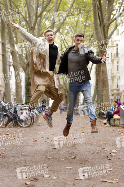 Lennart Betzgen und Jo Weil beim Fototermin zur TVNOW TV-Serie 'Verbotene Liebe - Next Generation' in der Weißenburgstraße. Köln, 06.10.2020