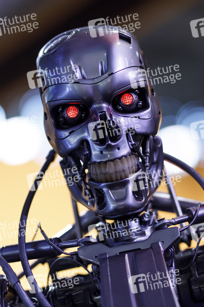 Terminator, T-800, Künstliche Intelligenz, KI, AI, Artificial Intelligence, Robot, Robotisierung, Transhumanismus, Transhumanism, Player, Bildschirmlicht, Spielesucht, Digitalisierung, Reizüberflutung, Spiele-Messe, Gaming, Gaming-Industrie, Spieleindustrie, Spielemesse, Gamingindustrie, Zocken, Daddeln, Games, Game, Spiele, PC-Spiele, Computerspiele, Konsolen, Konsolenspiele, Videospiele, Fair, Event, Gamer, Unterhaltungselektronik, Software, Hardware, europäische Leitmesse für digitale Spielekultur, internationale Gaming-Community, Gamescom Congress 2019, Virtual Reality, Browsergames, Spieletrends, Symbolfoto, Symbolbild