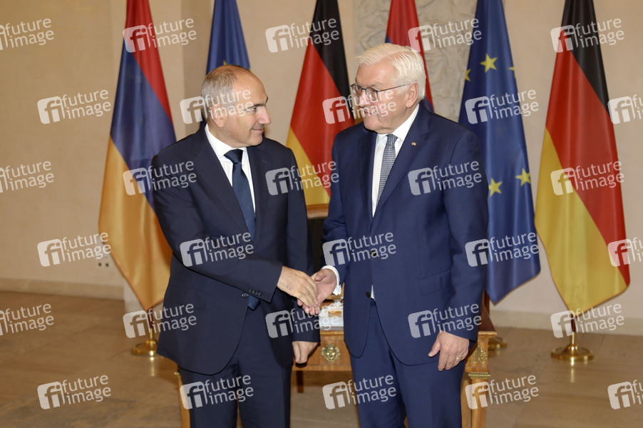 Nikol Paschinjan und Frank-Walter Steinmeier beim Empfang des Ministerpräsidenten der Republik Armenien zu einem gemeinsamen Gespräch mit dem Bundespräsidenten und Eintrag ins Gästebuch im Schloss Bellevue. Berlin, 09.12.2025