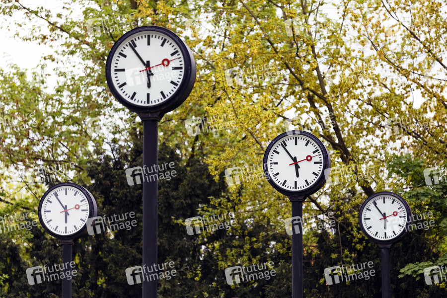 Uhren der Installation 'Zeitfeld' von Klaus Rinke. Düsseldorf, 05.08.2019