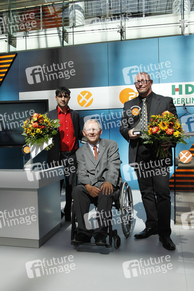 Wolfgang Schäuble mit den Preisträgern Marc Kohlert und Moein Ramezanianlaki